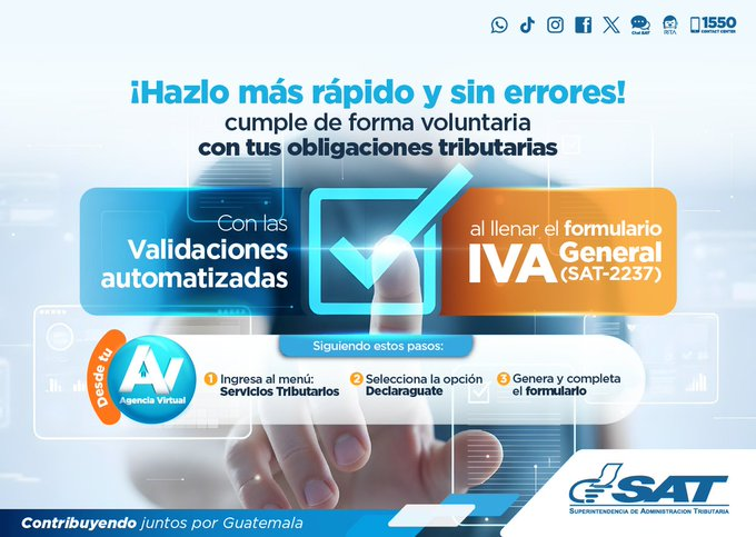 La Superintendencia de Administración Tributaria (SAT) incorporó validaciones automatizadas en el formulario SAT-2237 (IVA General) dentro de la Agencia Virtual.